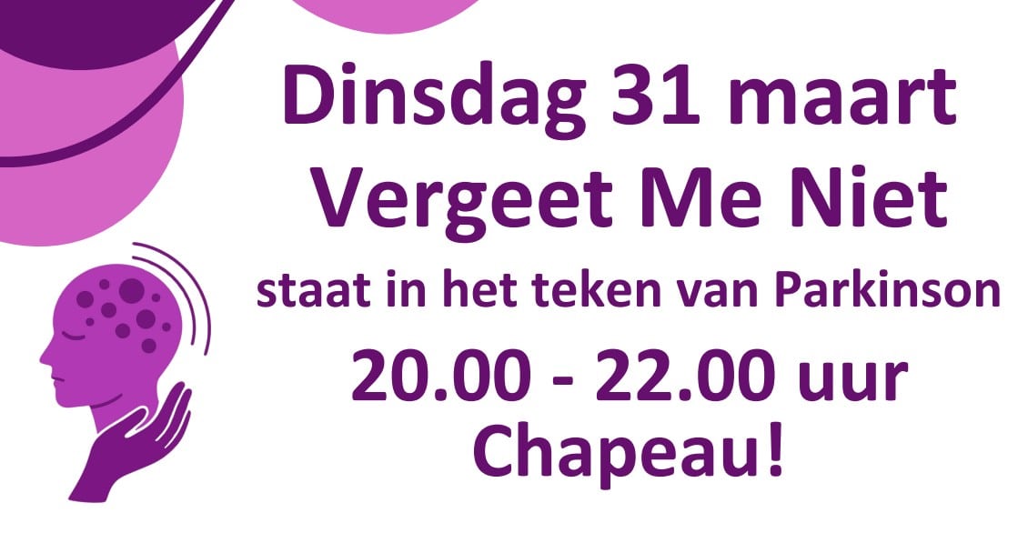 ‘Vergeet ook Parkinson niet’ was een opmerking, die de werkgroep Vergeet Me Niet kreeg van een bewoner van Het Laar die deze avonden bezoekt. Want net als dementie kan ook deze ziekte echt iedereen overkomen en krijgen steeds meer mensen hiermee te maken.